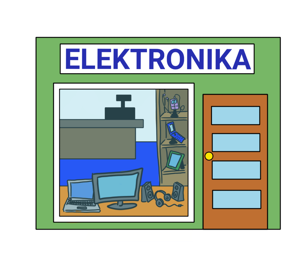 Dom towarowy – to jest wielki budynek, w którym sprzedają różne rzeczy (kosmetyki, ubrania, elektronikę, meble, …)